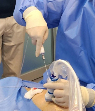 Before the laser catheter that generates heat is inserted, a space of about 1 mm is created under the skin. A thin catheter is then placed outside the vein, and the protective solution is injected to form a water tunnel around the vessel. This special solution contains a tumescent anesthetic, which eliminates pain and absorbs harmful by-products generated during laser surgery. It also protects nearby tissues and nerves from potential injury. The front tip of the catheter used to inject the solution is designed with a rounded blunt needle, not a sharp one, to prevent damage to the skin and vascular tissue.